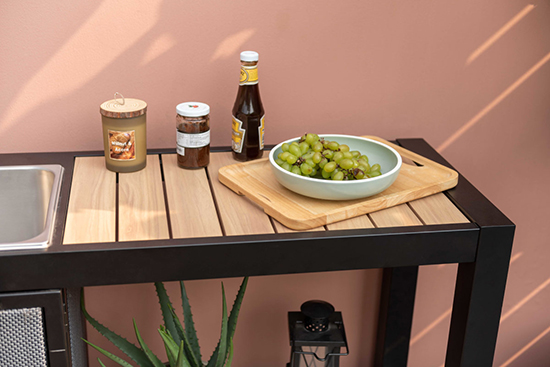 Product name : YASN Aluminum Outdoor Kitchen Cabinets BBQ Grill Item : YS-OK019 Details :·To completely round-off your outdoor living, we offer you the outdoor kitchen. Crafted in the same sleek design and style as the rest of the range, you can easily set this up next to your barbeque and won’t have to run back and forth between inside and outside – just enjoy the time and the company. ·Aluminium rust-free structure, 100% maintenance free. 1 x Kitchen 132 x 43 x 114 (cm)